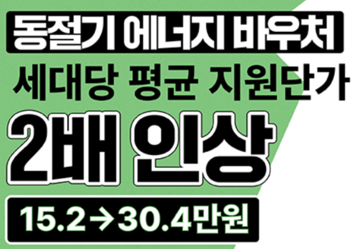 물가상승으로 난방비가 상승하자 정부에서는 에너지바우처 지원금액을 추가 인상하는 대안책을 발표하였습니다. 동절기에 한하여 기존의 2배의 금액이 지원됩니다.