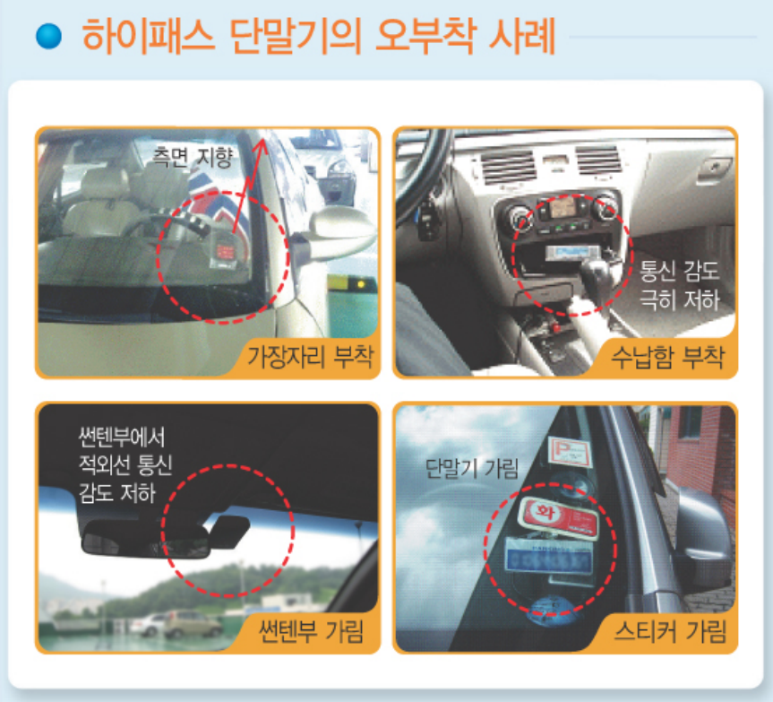 전자태그를 차량에 부착할 때는 제조사에서 권장하는 위치에 부착해야 합니다. 부착 위치를 잘못하면 전자태그 인식 오류가 발생할 수 있습니다. 전자태그 부착 위치는 각 제조사별로 다르므로 제조사에서 제공하는 가이드를 참고해야 합니다.