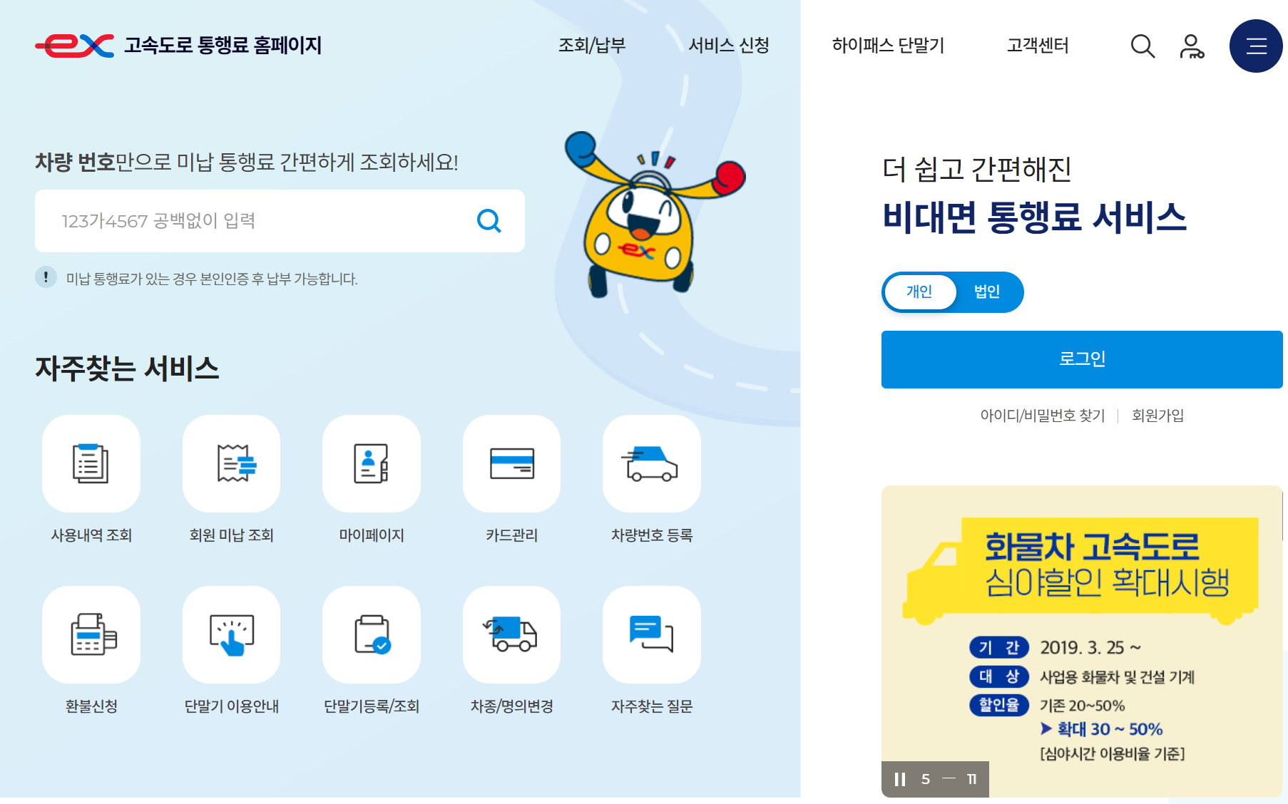 1. 고속도로 통행료 홈페이지