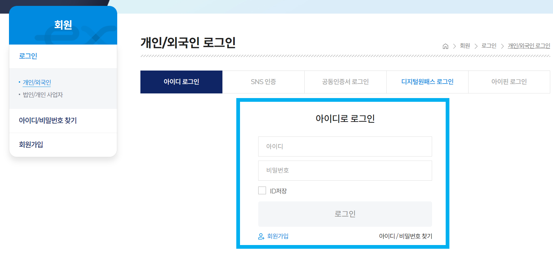 홈페이지 하이패스 카드 등록