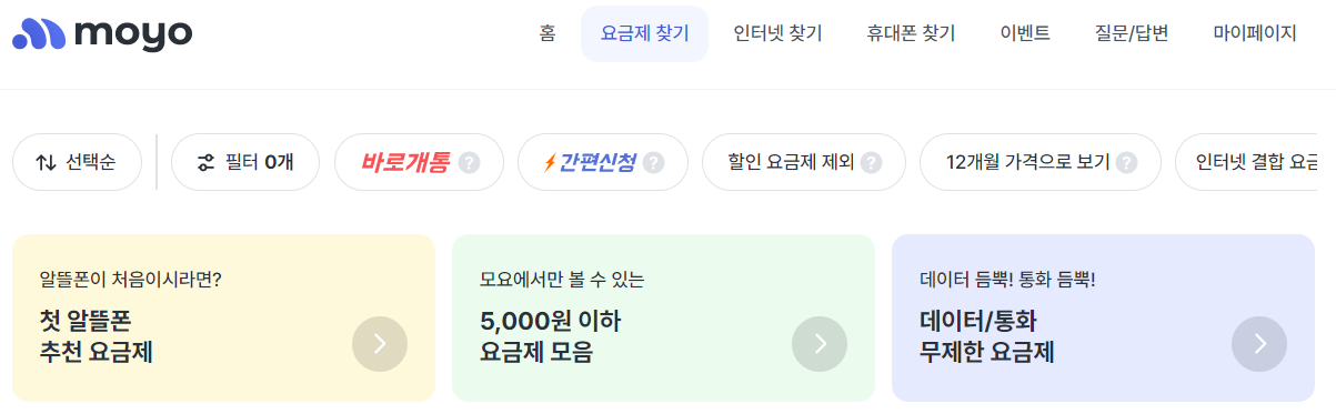 선호하는 통신망을 선택하기 어려울 경우, "알뜰폰 허브"나 "모두의 요금제, 모요"와 같은 웹사이트를 이용하여 데이터 사용량, 음성 통화, 문자 메시지 등의 세부 항목을 구성하고 원하는 가격대에서 검색할 수 있습니다. 매달 진행되는 이벤트 요금제도 꼭 확인해보시기 바랍니다.