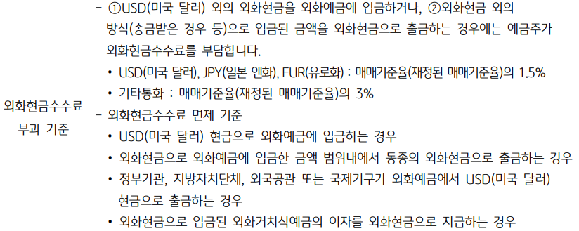 - 외화현찰로 입출금하는 경우 현찰수수료가 부과될 수 있습니다.