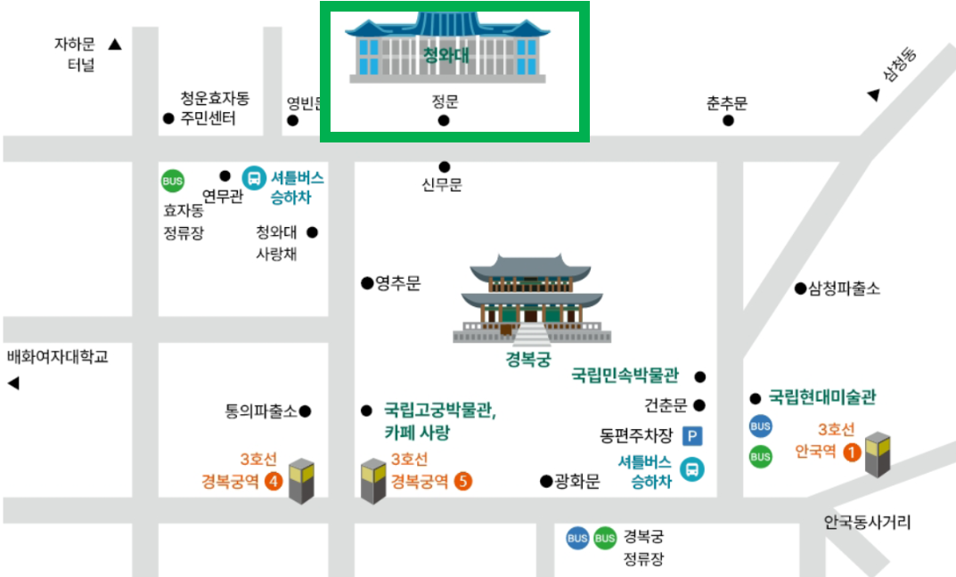 - 청와대를 방문하실 때에는 편안한 신발을 신는 것을 추천