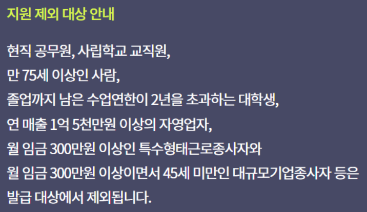 국민내일배움카드 신청자격의 지원 제외 대상은 아래와 같습니다.