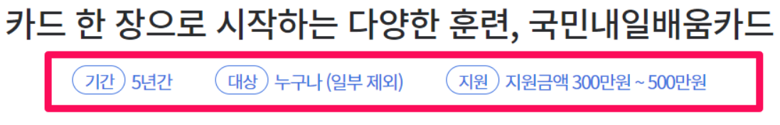 국민내일배움카드 신청자격을 갖추게 되면 5년 동안 300만원을 지원받습니다. 일부 해당자에게는 추가지원도 이루어지고 있습니다. 추가지원 국민내일배움카드 신청자격을 가진 사람에게는 100 ~ 200만원의 금액이 더 지원되어 최대 500만원까지 지원되고 있으니 정말 큰 금액입니다.