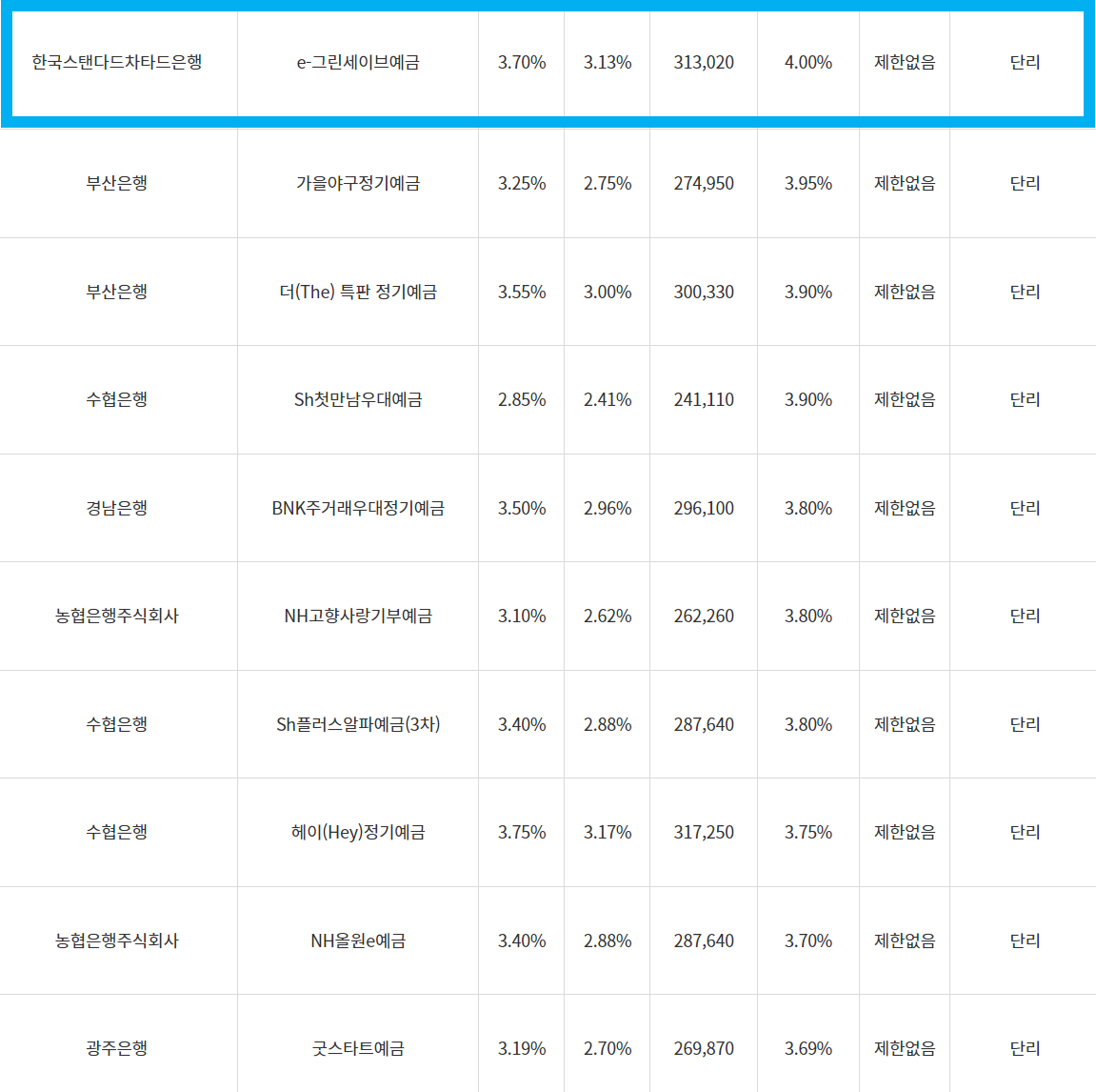 1. 한국스탠다드차타드은행 4.00% e-그린세이브예금
