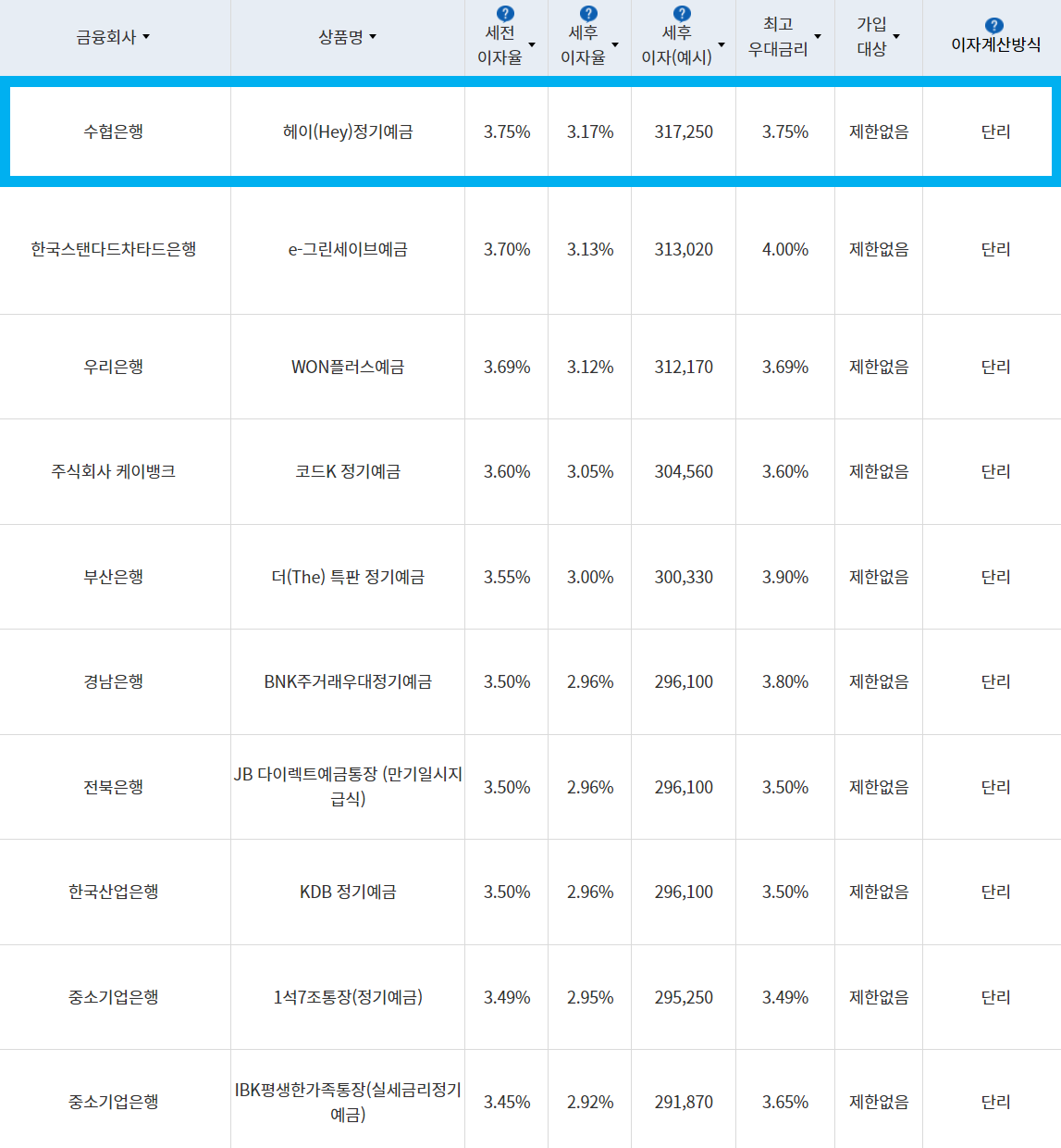 1. 수협은행 3.75% 헤이(Hey)정기예금