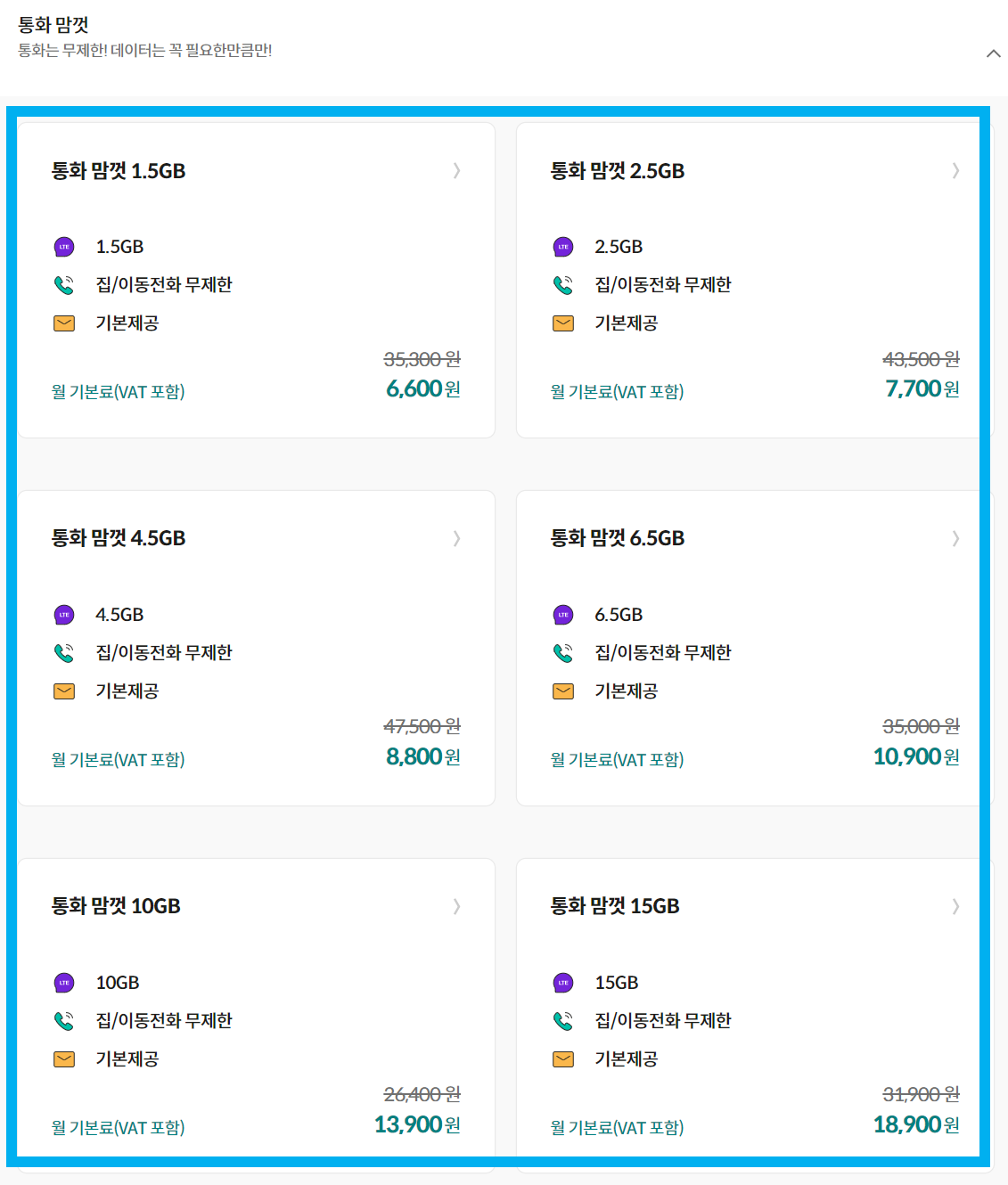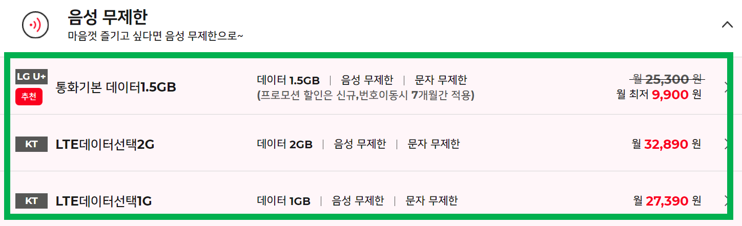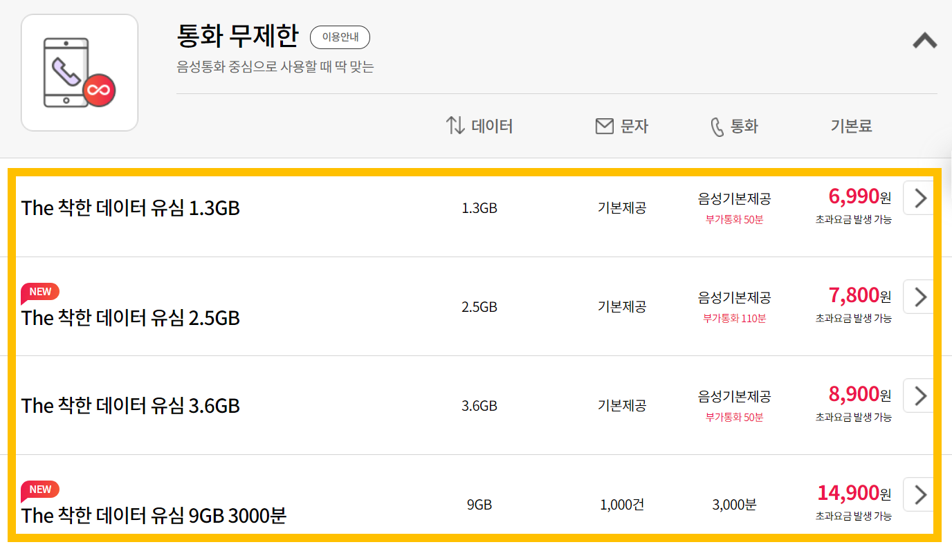 3.알뜰폰 요금제 비교 : 통화 무제한 요금제