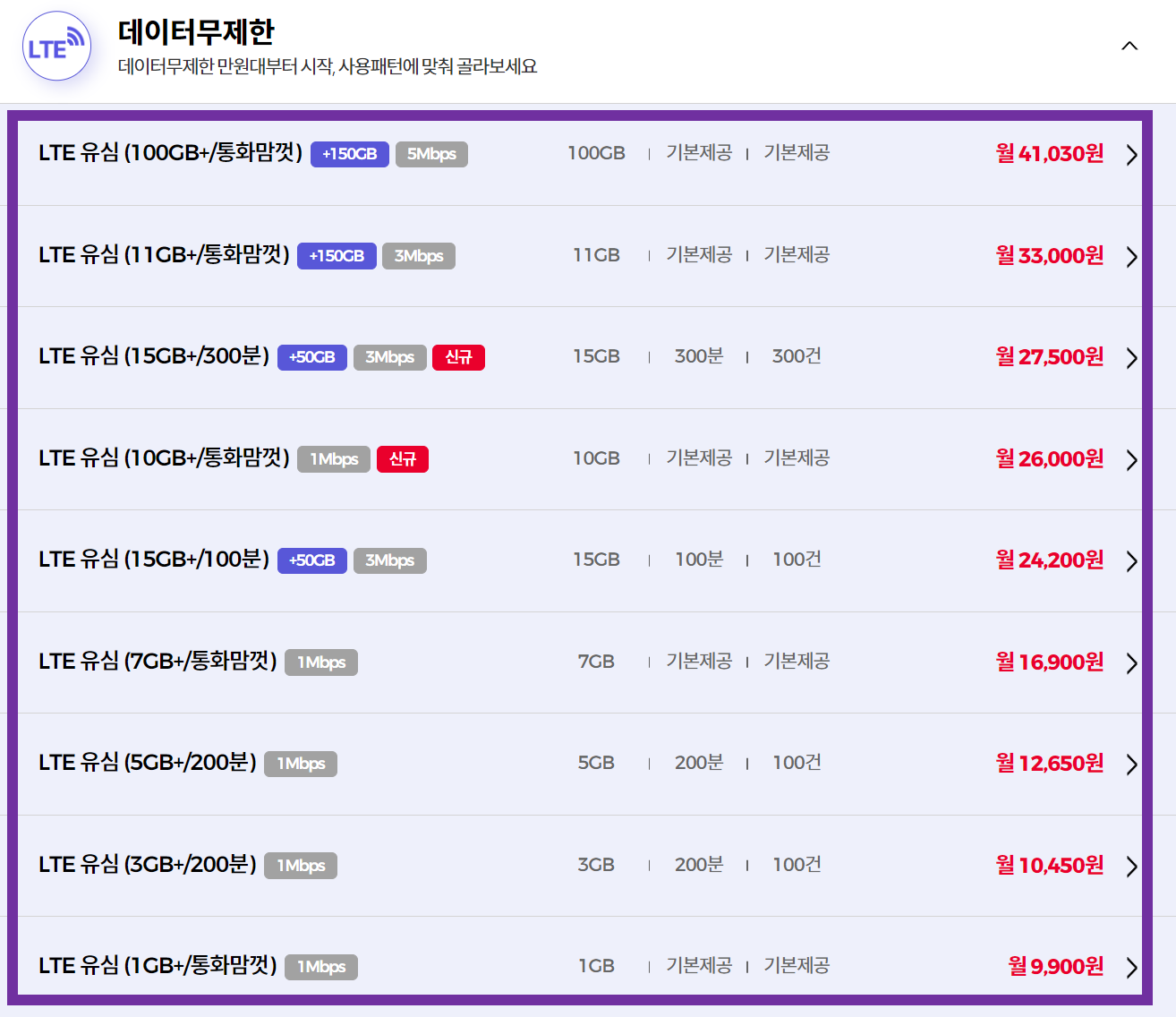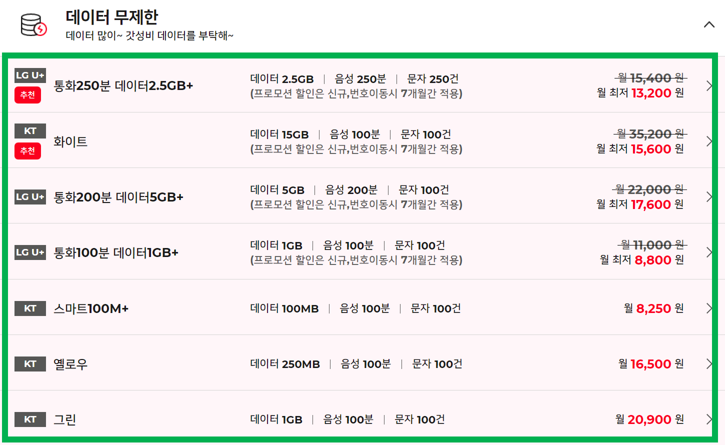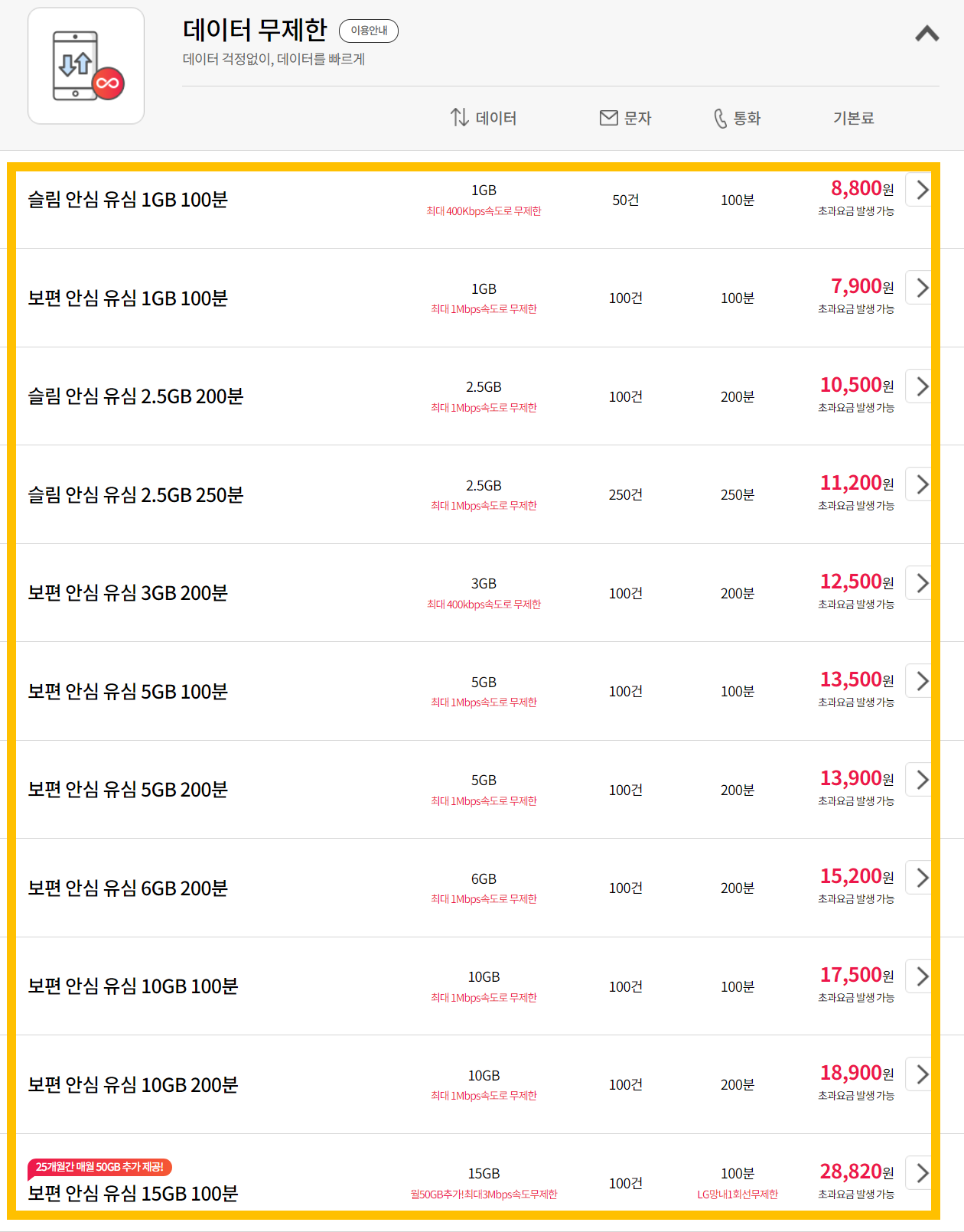 2.알뜰폰 요금제 비교 : 무제한 요금제