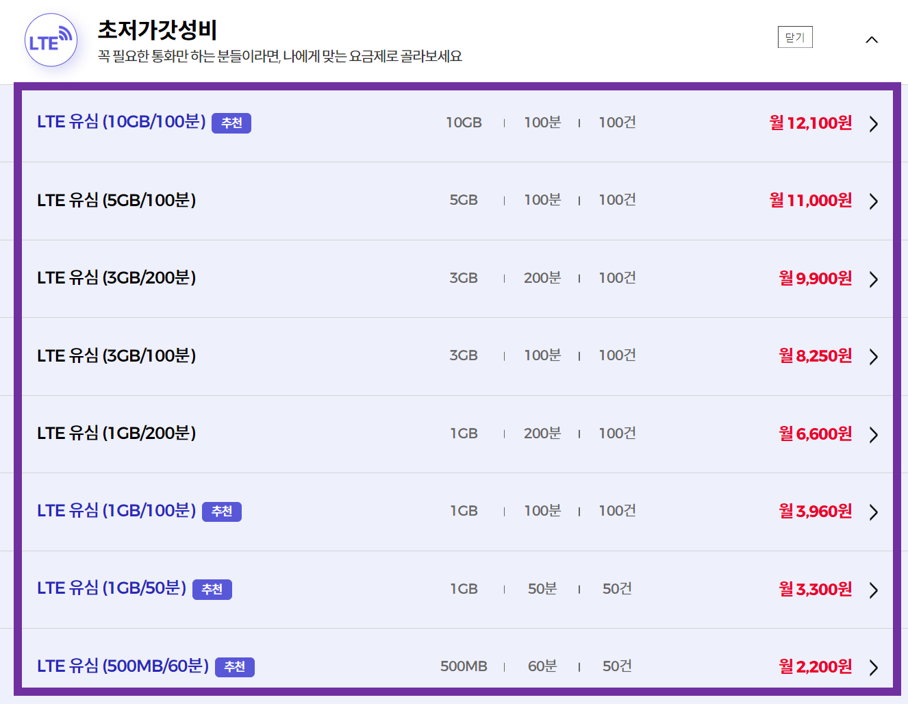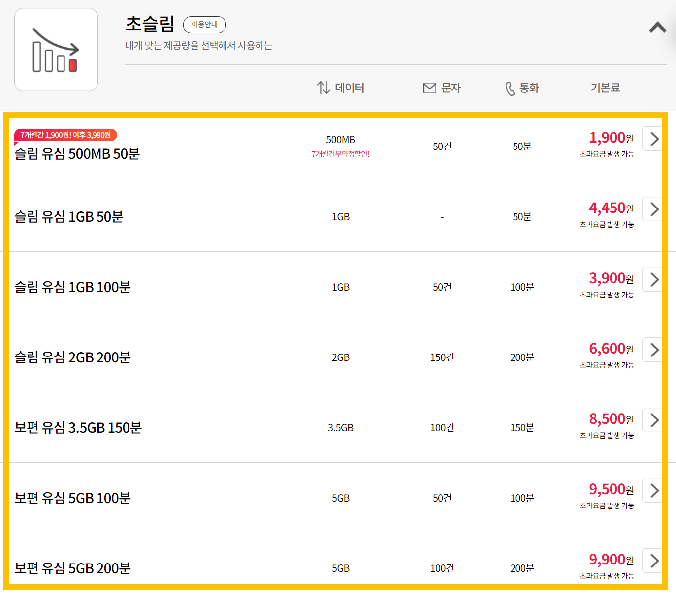 1.알뜰폰 요금제 비교 : 최저가 요금제