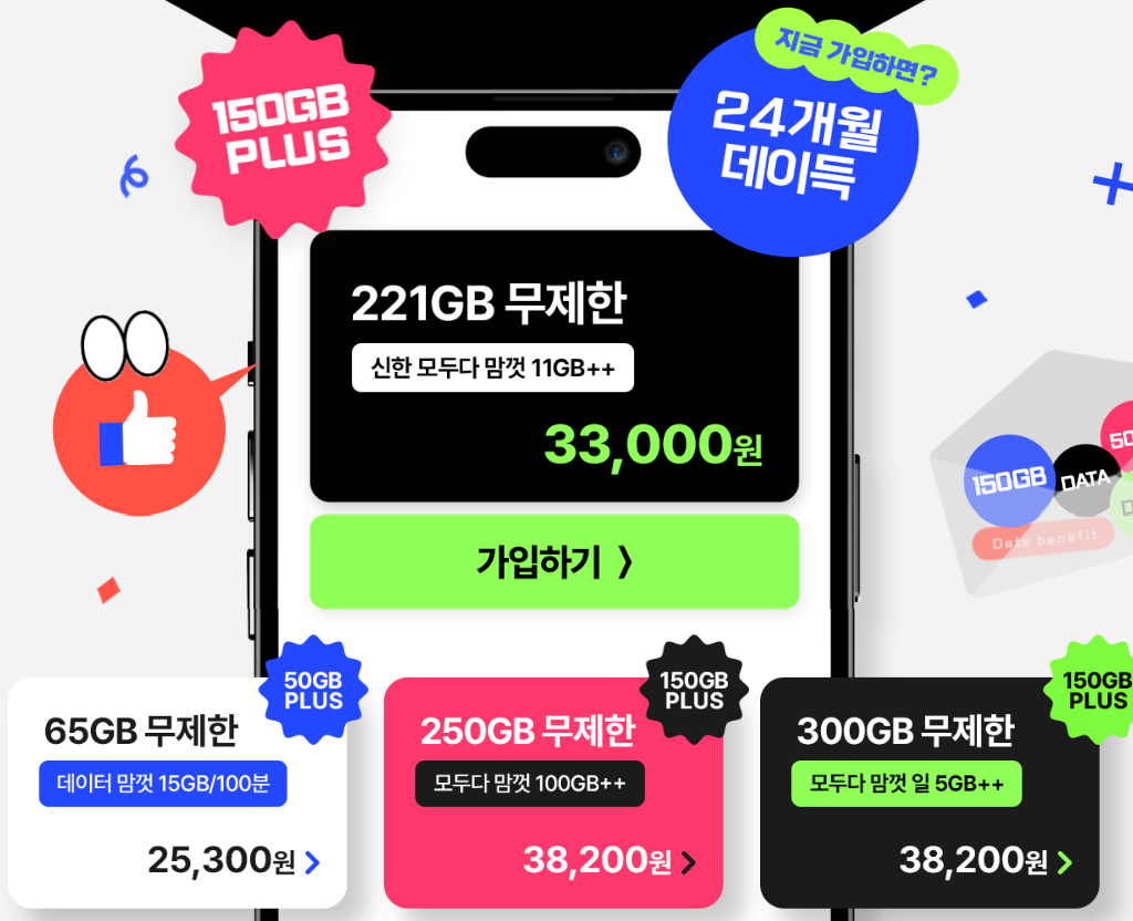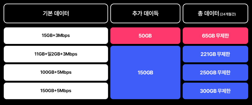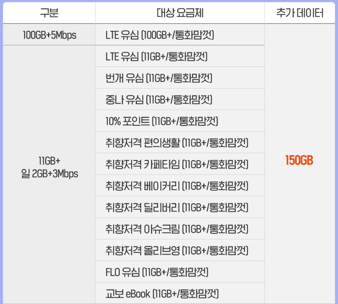 ② 24개월 동안 150GB를 매달 추가 데이터 증정하고 있습니다.