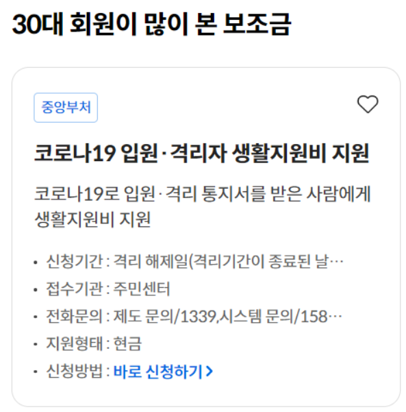 - 코로나 19 입원·격리자 생활지원비 지원금