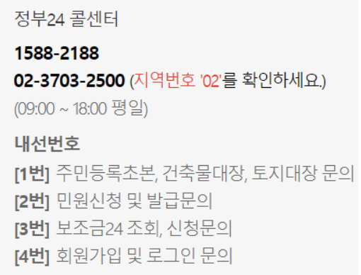 보조금24 이용에 대한 문의처는 정부24 콜센터를 이용하실 수 있습니다. 정부 보조금의 경우에는 분기별, 반기별로 신청하는 경우가 많으니 매일 확인해보지는 않더라도 분기별로 한번씩 확인해 보시면 변동 사항을 확인하실 수 있습니다.