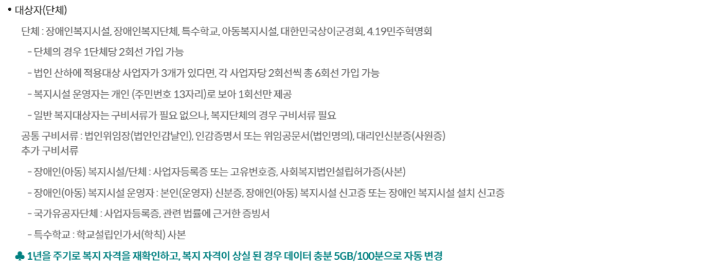 ※ 복지 5GB/100분 가입 대상자