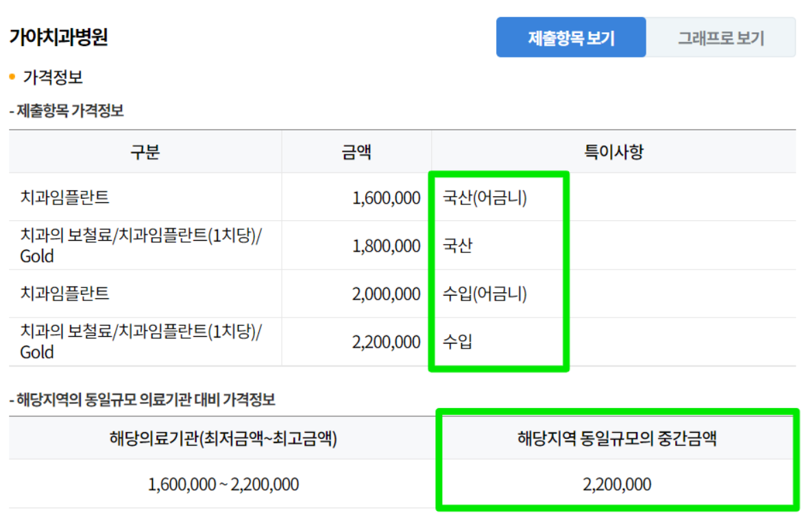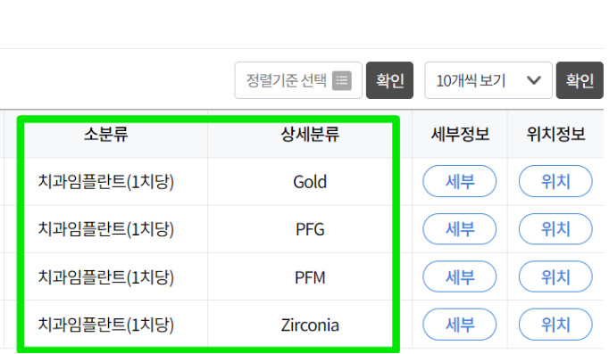 이 중 비급여 진료비 정보에서는 임플란트 가격을 지역별, 임플란트 종류별로 확인할 수 있으며 임플란트 가격 전국 평균 금액을 확인할 수 있습니다.