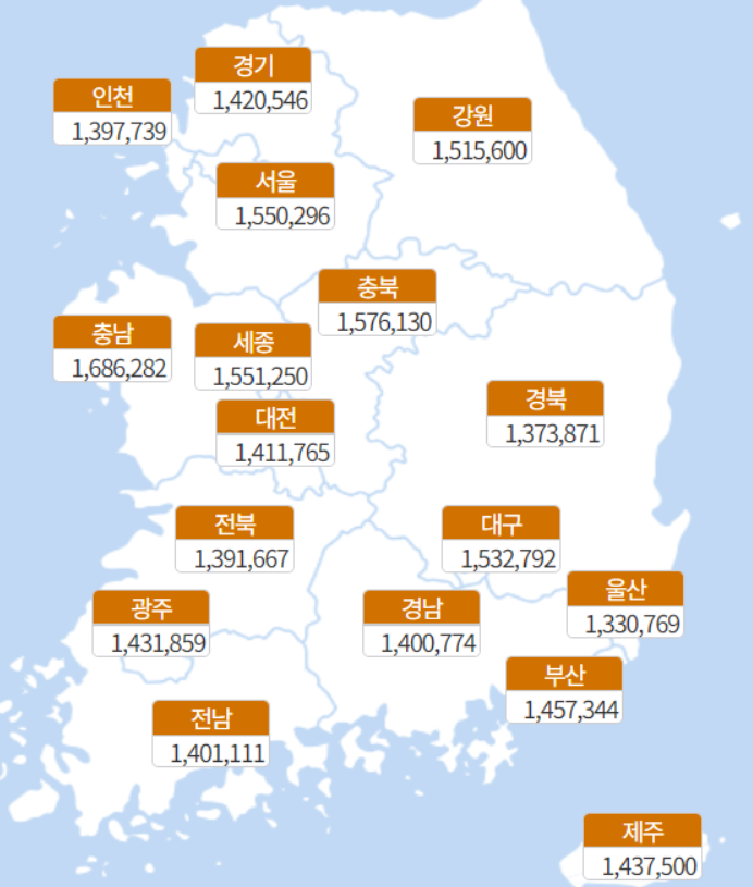 [지르코니아 지역별 평균 가격]