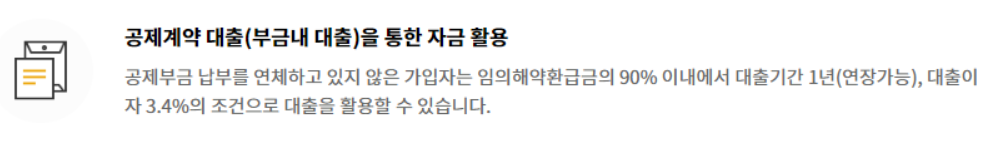 '공제 계약 대출'이라고 불리며 납부 부금의 90% 금액 이내로 대출을 지원해주는 제도 입니다.