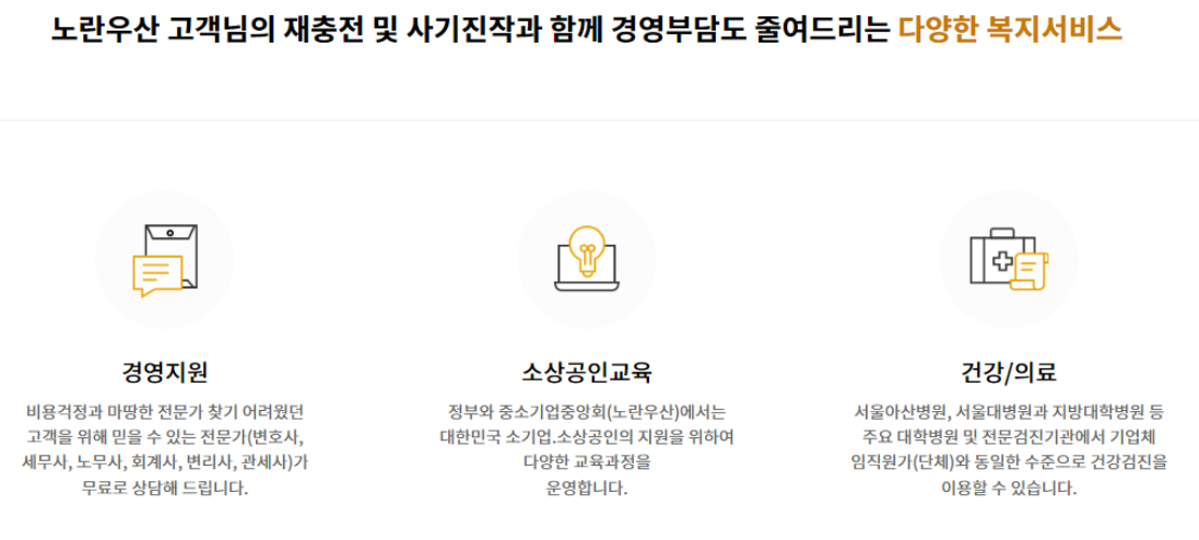 개인 사업을 하시는 분들이 많이 우려하시는 부분이 퇴직금이 없다는 것인데, 그러한 부분을 보완하면서 다양한 혜택을 제공하는 것입니다. 노란우산공제 단점을 우려하는 분들도 많지만 그럼에도 불구하고 많은 장점을 가진 제도임은 틀림이 없습니다.
